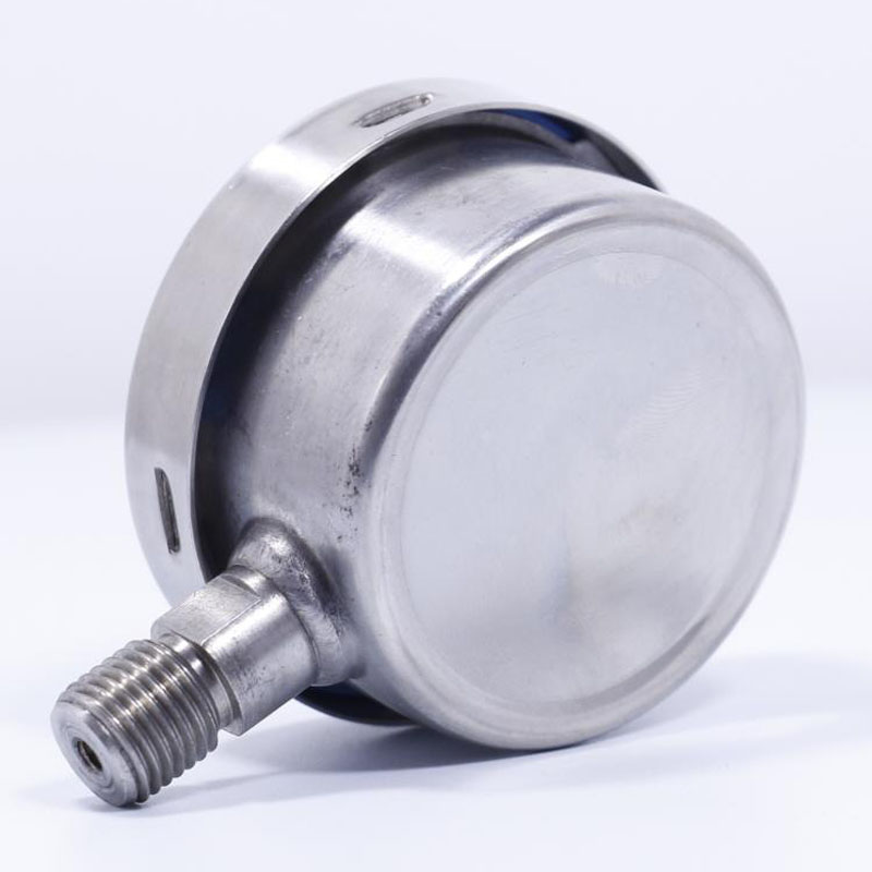 儀表由導壓系統(接頭、彈簧、螺釘等)、齒輪傳動、示數裝置(指針與度盤)和外殼(表殼、表蓋、表玻璃)組成。外殼為密封型結構,有效保護內部原件受環境影響和灰塵侵入。對于在表殼內充液(硅油或甘油)儀表,可以抗工作環境振動和減少介質壓力的脈沖抖動,起到很好的作用。