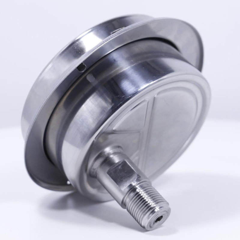 儀表由導壓系統(接頭、彈簧、螺釘等)、齒輪傳動、示數裝置(指針與度盤)和外殼(表殼、表蓋、表玻璃)組成。外殼為密封型結構,有效保護內部原件受環境影響和灰塵侵入。對于在表殼內充液(硅油或甘油)儀表,可以抗工作環境振動和減少介質壓力的脈沖抖動,起到很好的作用。