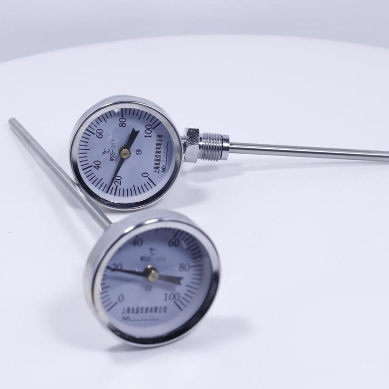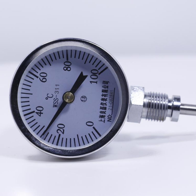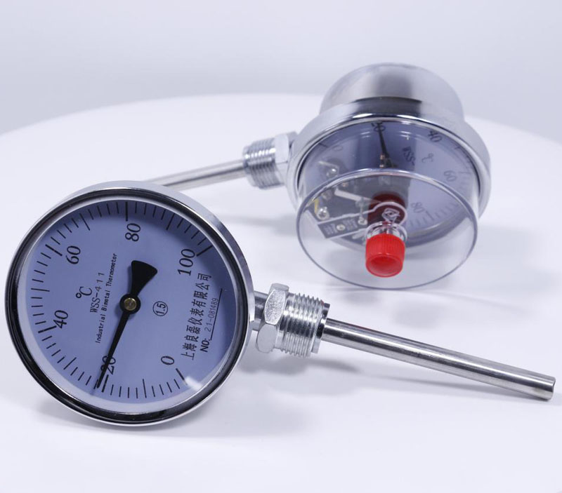 雙金屬溫度計廣泛用于化工、石油、冶金、紡織、醫藥、食品等部門熱門過程的設備和管道介質測溫。是用于測量中、低溫的現場檢測儀表,可以用來直接測量氣體和液體的溫度。具有無汞害、易讀數、牢固耐用等優點。雙金屬溫度計是利用繞制成螺旋管狀的雙金屬片一端被固定,另一自由端與指針連接,隨著溫度的變化而轉動,并帶動指針旋轉指示溫度的單針式指示溫度計。