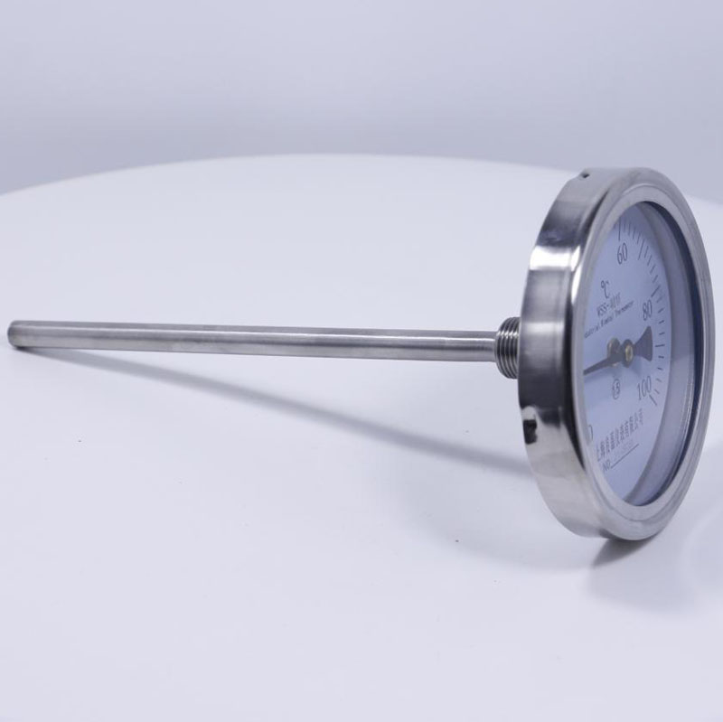 雙金屬溫度計廣泛用于化工、石油、冶金、紡織、醫藥、食品等部門熱門過程的設備和管道介質測溫。是用于測量中、低溫的現場檢測儀表,可以用來直接測量氣體和液體的溫度。具有無汞害、易讀數、牢固耐用等優點。雙金屬溫度計是利用繞制成螺旋管狀的雙金屬片一端被固定,另一自由端與指針連接,隨著溫度的變化而轉動,并帶動指針旋轉指示溫度的單針式指示溫度計。